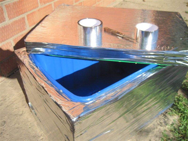 - Si vous le souhaitez, vous pouvez créer une couche supplémentaire pour le conteneur - une couche extérieure. Isolon est également utilisé pour cela. Maintenant, sa partie en aluminium est transformée en surface extérieure du récipient.