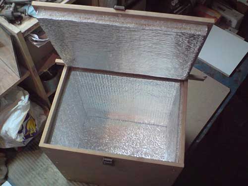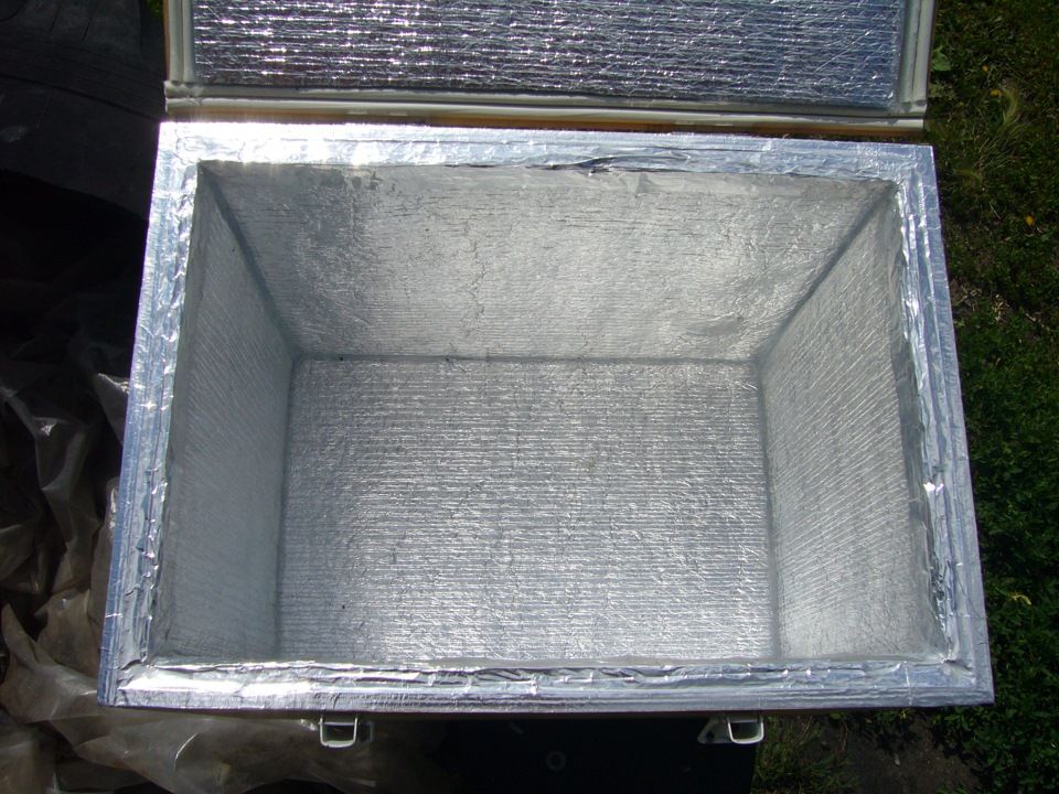 Une deuxième couche d’isolant en feuille est appliquée sur la première couche d’isolant. Une poignée est fixée à l'extérieur du couvercle pour ouvrir le réfrigérateur. Vous pouvez également fixer le couvercle avec des charnières de meubles.
