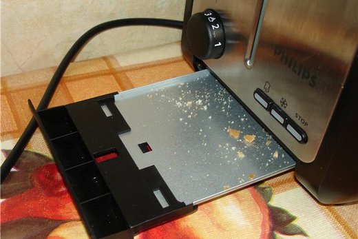 Tout d'abord, le grille-pain est débarrassé de la chapelure. S’ils restent longtemps à l’intérieur de l’appareil, cela provoquera la croissance de bactéries. En conséquence, le grille-pain deviendra une source d'odeur désagréable, pouvant faire frire la chapelure.