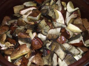 Selon leur taille, les champignons peuvent être conservés entiers ou hachés. En raison de leur chapeau volumineux, il est préférable de couper les champignons en tranches.