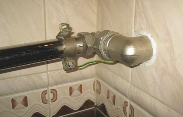 La méthode est simple à mettre en œuvre, c'est pourquoi beaucoup la choisissent encore.Pour ce faire, vous aurez besoin d'un fil de cuivre à 1 conducteur. L'isolation doit être retirée aux deux extrémités. Une extrémité est fixée au corps de l'équipement, l'autre à l'alimentation en eau. Vous pouvez fixer le fil à l'aide d'une pince métallique.