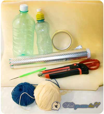 - Enveloppez la bouteille intérieure avec du papier d'aluminium. Nous le réparons avec du ruban adhésif.
