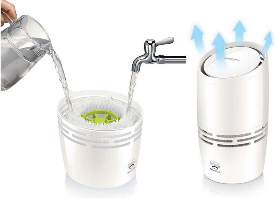 Basé sur une hydratation naturelle et froide. Ils ont un réservoir pour remplir l'eau. Ensuite, il est traité dans des évaporateurs. Les ventilateurs aspirent l’air et le restituent saturé d’humidité. Si l'air est suffisamment humide, l'appareil fonctionne mieux. Pour que le filtre dure plus longtemps et ne se bouche pas, l'eau doit être propre. Il faut 4 à 8 litres par jour.