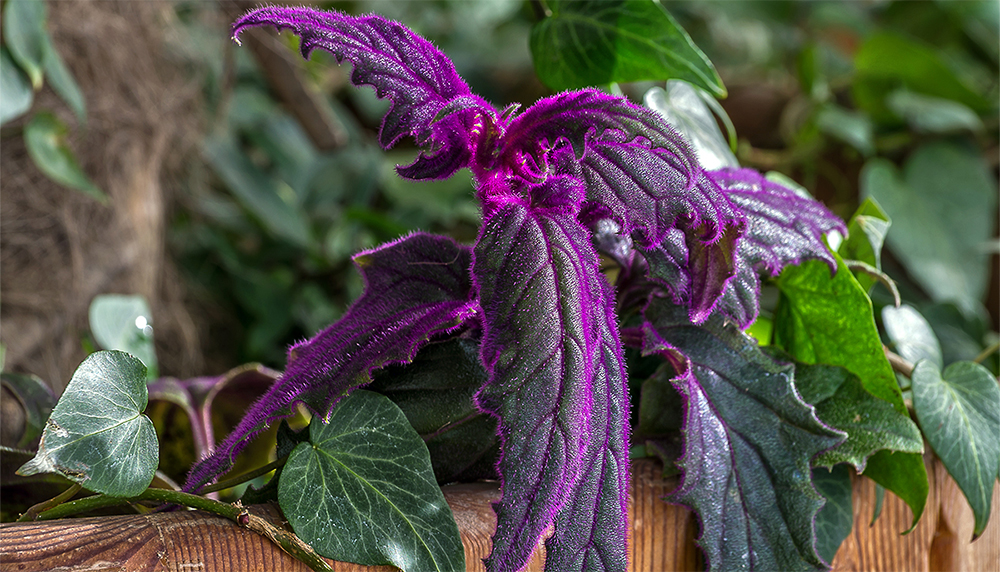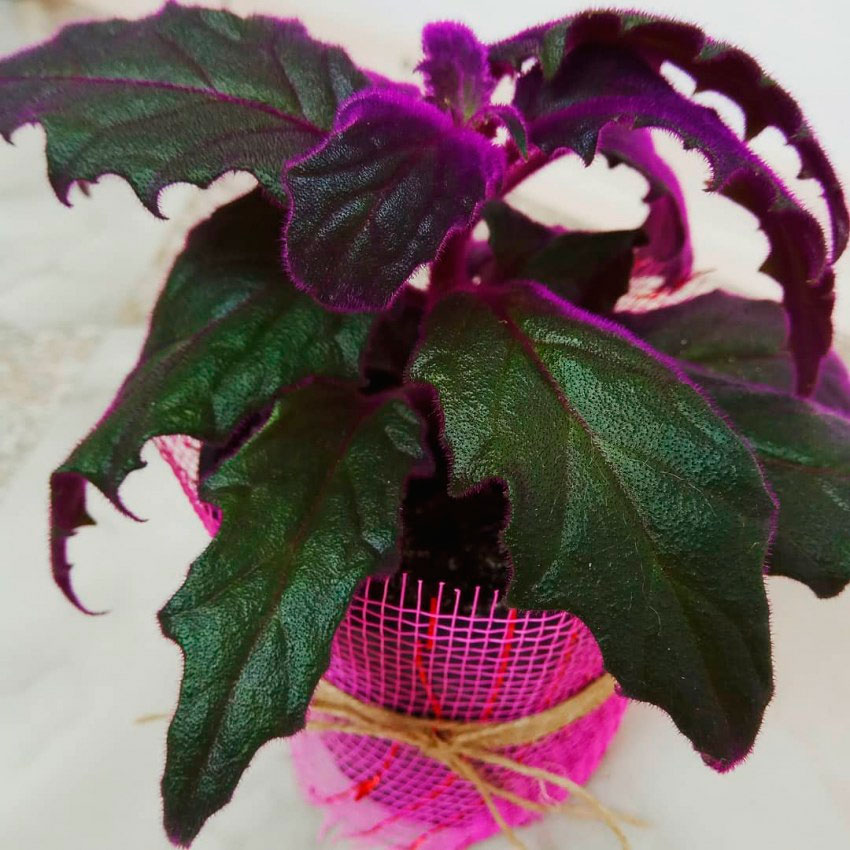 Un sous-arbuste persistant aux feuilles délicates et veloutées, parfois colorées en dessous pourpre. Cela crée un sentiment inhabituel. Les veines des plaques peuvent également être peintes d’une couleur similaire.