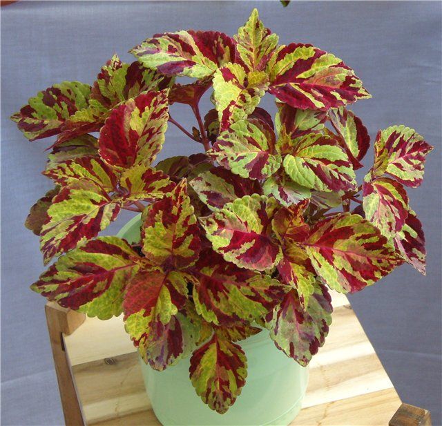 Là où il n'y a pas de limite à l'imagination, c'est Coleus. Chez la plupart des espèces, les feuilles sont peintes dans des tons vifs et accrocheurs. Il existe des plaques unicolores, mais il existe des variétés dans lesquelles elles sont peintes en plusieurs nuances à la fois. Ces buissons sont très beaux et sont tout à fait faciles à entretenir. De plus, en été, ils peuvent être sortis dans le jardin et rentrés à l’intérieur pour l’hiver.