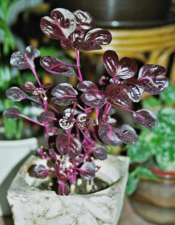 - Purple compacta - la plupart des feuilles sont vertes, seules quelques-unes ont une teinte violette sale ;