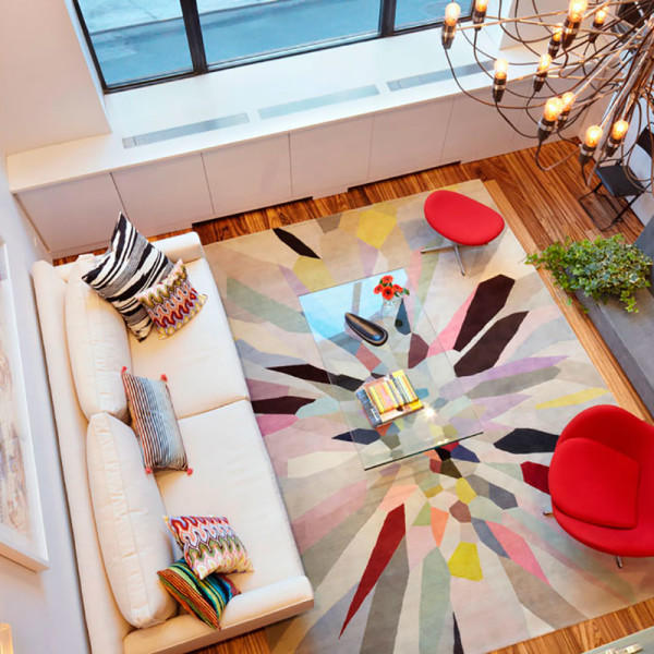 Si vous décidez d'acheter un tapis, assurez-vous qu'il soit lumineux et inhabituel. Allez au-delà des stéréotypes et abandonnez immédiatement tout ce qui est familier et neutre. Les tapis lumineux et originaux semblent très réussis et avantageux à l'intérieur, et plus ils sont lumineux, mieux ils s'intègrent dans un environnement laconique et cohérent.