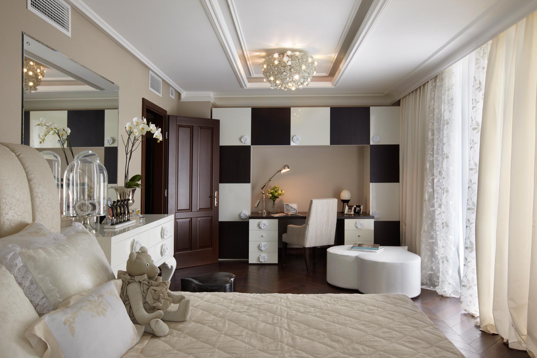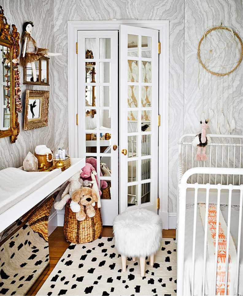Quant à la chambre d'enfant, vous pouvez ajouter en toute sécurité des losanges, des zigzags, des spirales, des cercles, des liserés contrastés, ainsi que toutes sortes de motifs exotiques. N'oubliez pas que l'art déco est un mouvement audacieux, mais que tous les modèles doivent être stricts et épurés. De plus, la symétrie en tout est un autre des principes de base de cette direction.