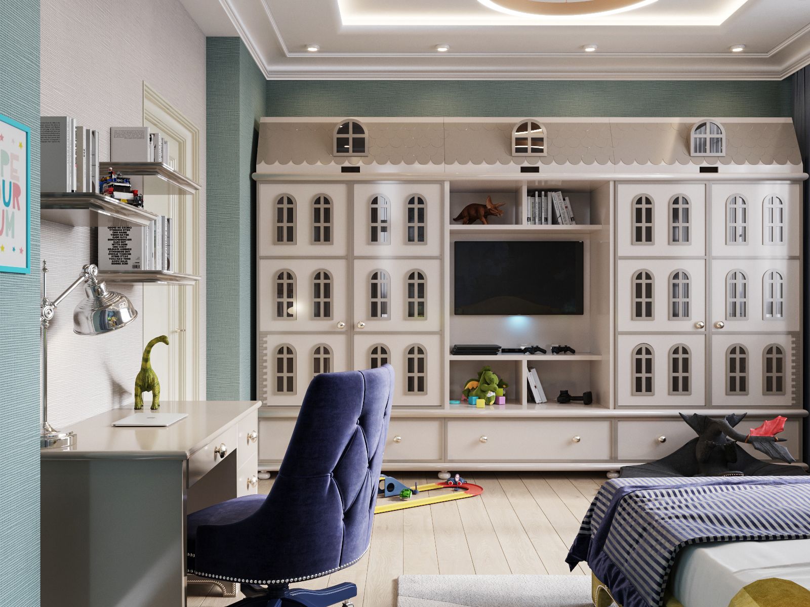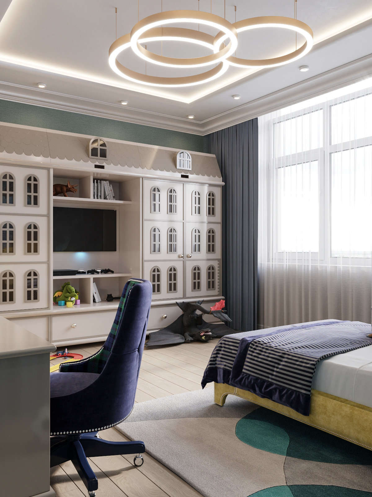 Une chambre d'enfant de style art déco est une pièce étonnante qui transmet une atmosphère particulière de magie. Ce qui rend cette tendance populaire, c'est son expressivité exceptionnelle, reflétant l'éclat et la richesse, ainsi que la légèreté de l'intérieur.