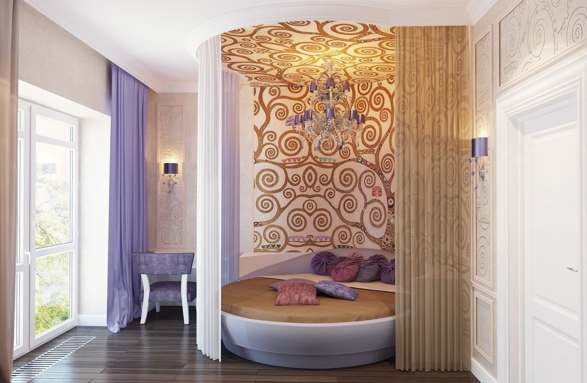 - Variété de formes.Un lit rectangulaire, une large table ovale, une chaise ronde profonde, tout cela s'intégrera parfaitement dans un décor art déco.