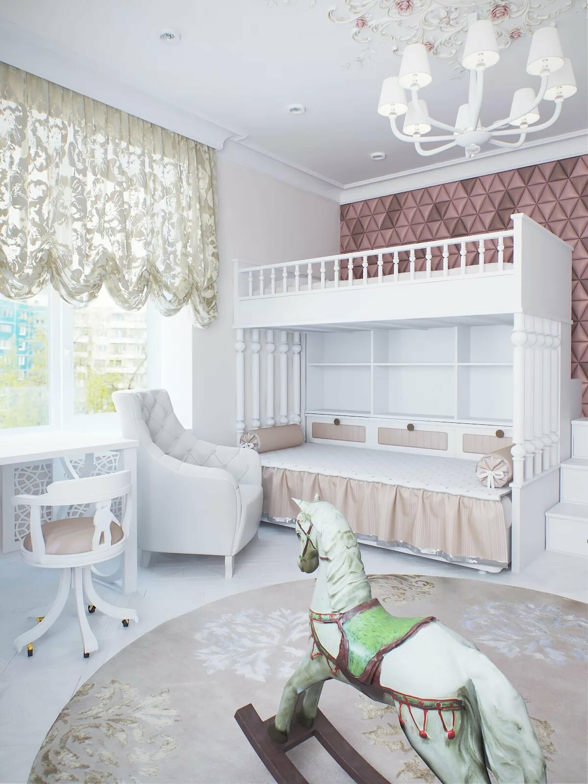 Choisir des meubles pour une chambre de bébé dans ce sens est, pour être honnête, une tâche difficile. Après tout, le style implique des meubles coûteux et luxueux, et pour une chambre d’enfant, de tels délices seront inutiles.