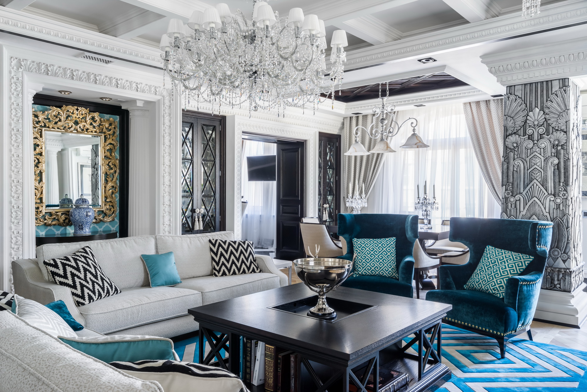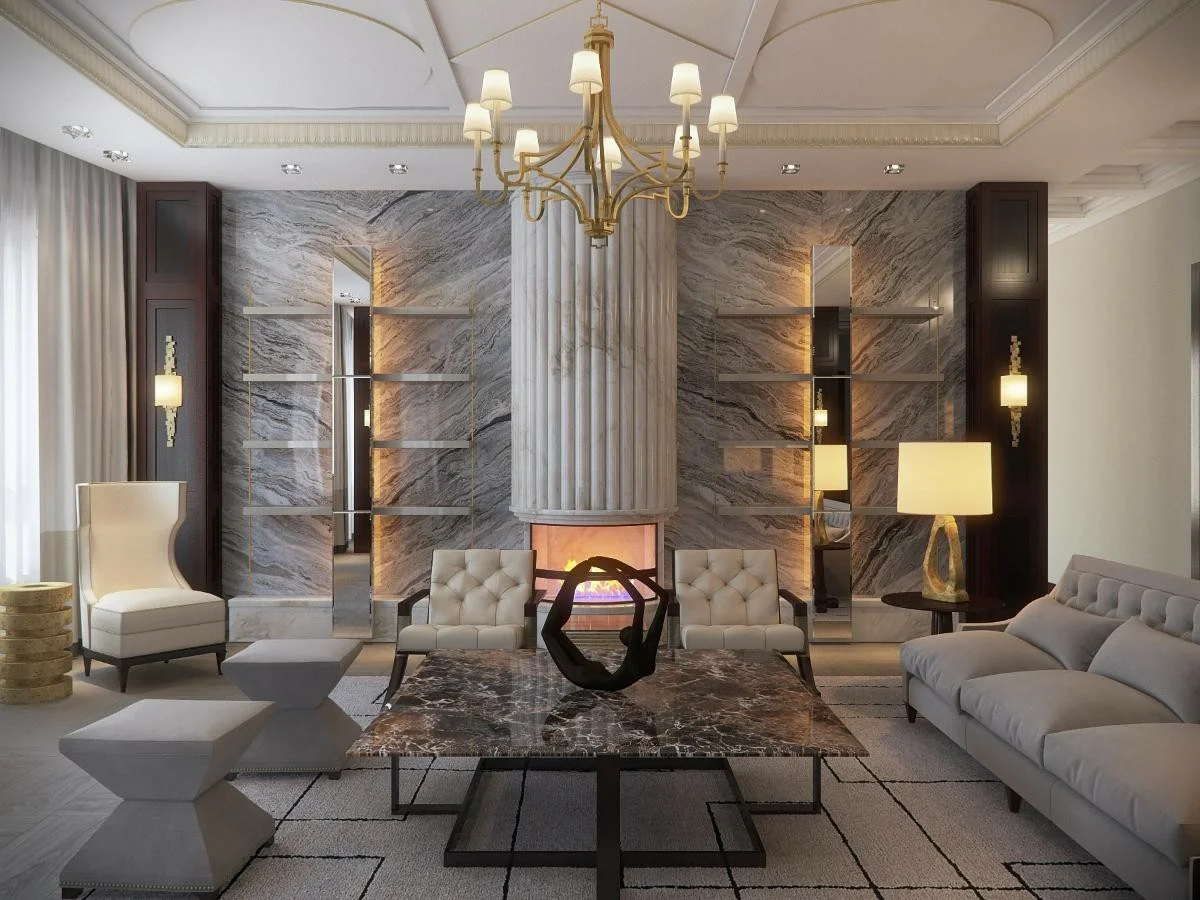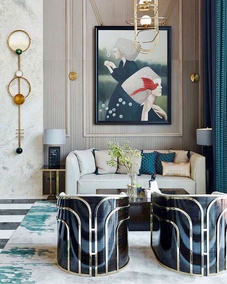 Conception de salon dans un style art déco avec photo