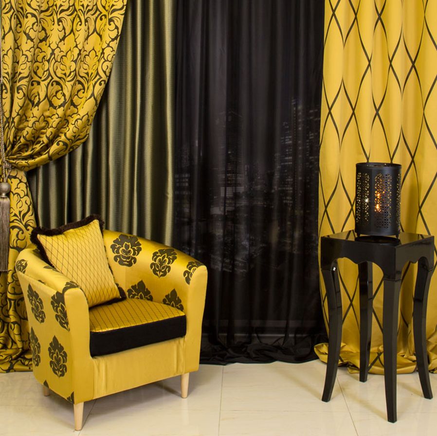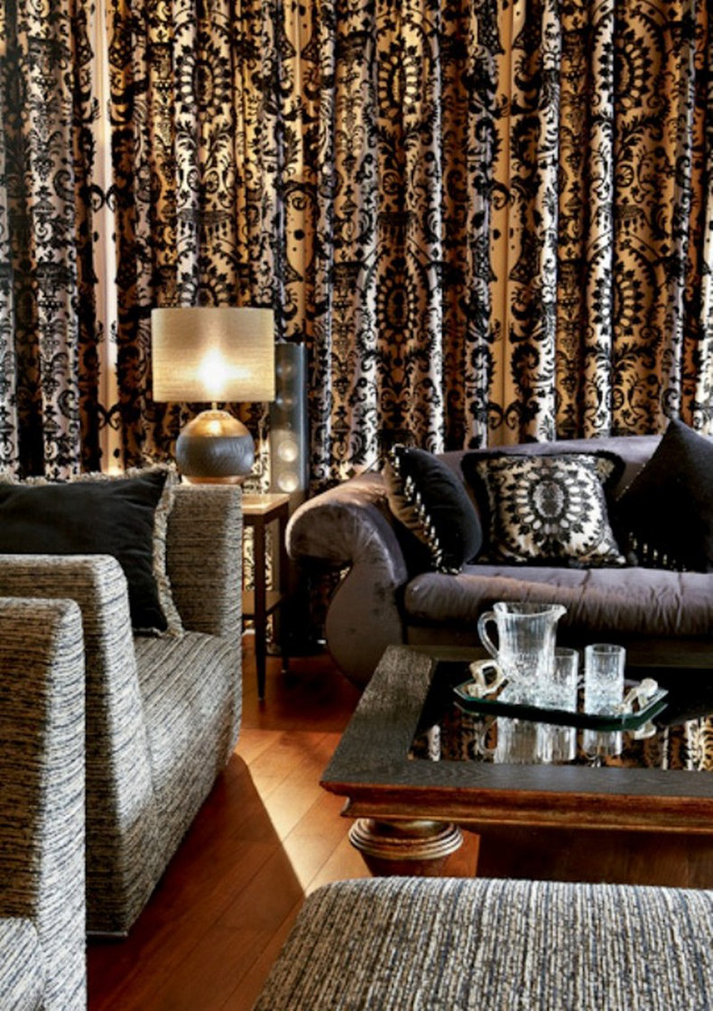 Séparément, il convient de mentionner les rideaux de style Art déco. On peut dire que cet élément particulier est presque le principal, qui donne à toute l'atmosphère une direction lumineuse et audacieuse. Si la pièce est décorée principalement dans des tons calmes, il est alors permis de se concentrer sur les rideaux. Ils doivent certainement être longs, lourds, massifs, avec des motifs et des dessins variés. L’utilisation de couleurs vives est la bienvenue.