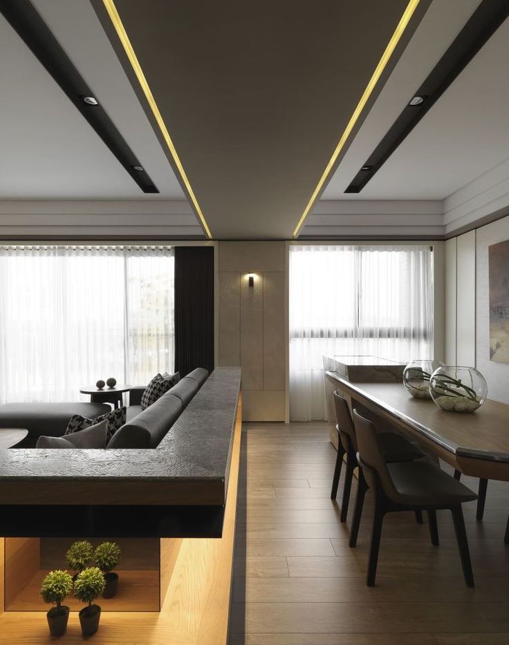 Ce plafond est considéré comme un complément idéal à la lumière naturelle et crée une atmosphère originale et intimiste dans la pièce.