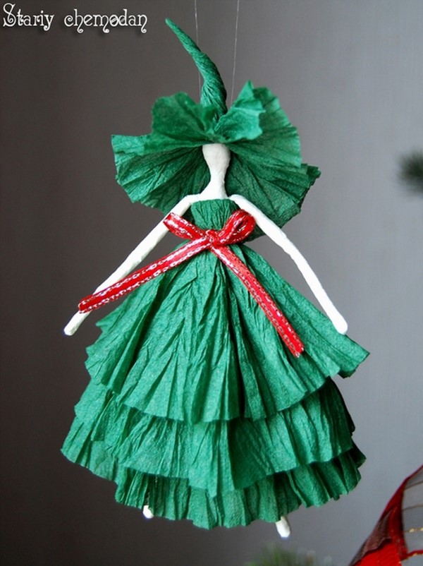 Il ne reste plus qu'à faire un trou au centre pour la tête et les bras et à y faire passer la ballerine. La jupe doit être serrée avec du fil ou du ruban pour qu'elle ne s'envole pas.