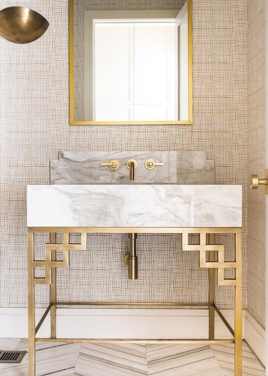 - Les magnifiques carreaux géométriques imprimés en marbre gris, blanc et or sont très impressionnants et sophistiqués.