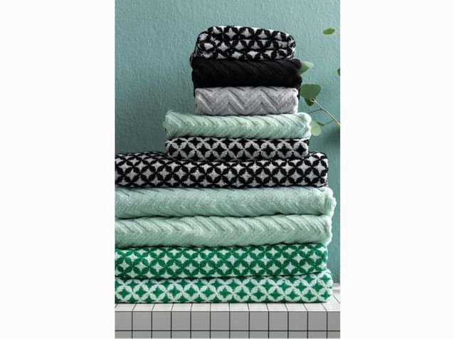 Comme pour les autres textiles, bien entendu, aucun oreiller n’est autorisé dans la salle de bain. Mais les serviettes doivent bien sûr être présentes. Choisissez des textiles qui véhiculent une atmosphère art déco.