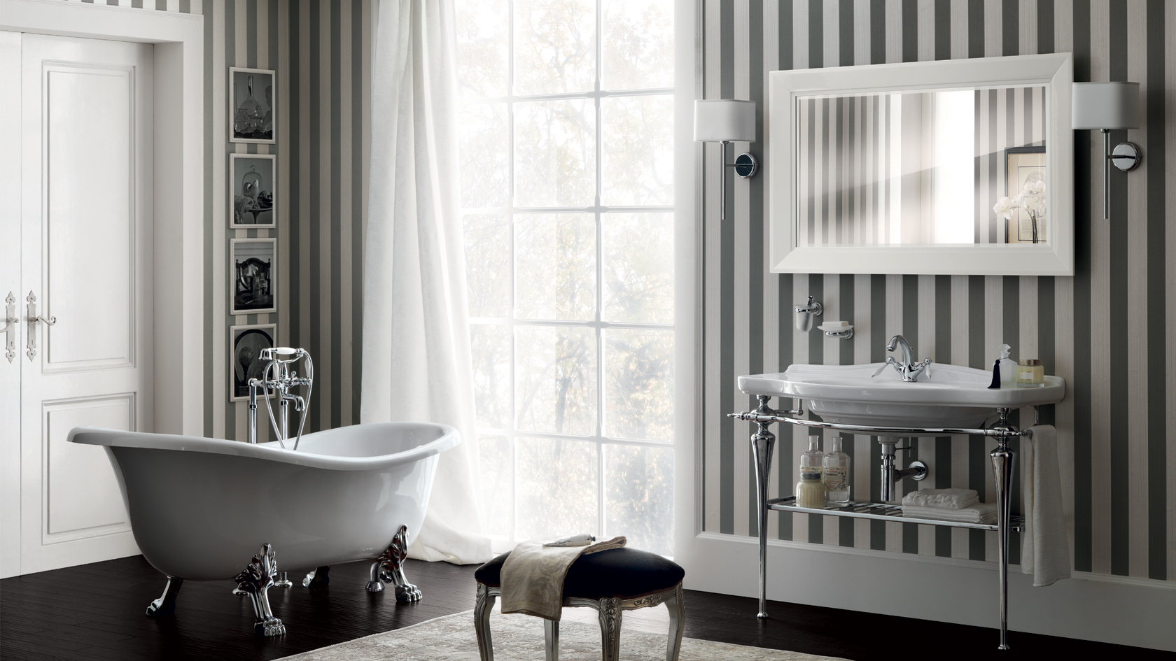 Si vous décidez de placer des meubles dans la salle de bain, ils doivent être classiques - massifs, mais en même temps sans prétention. Les armoires et étagères standard en plastique et en panneaux de particules doivent être remplacées par des commodes, des étagères, des plateaux de table en bois ou d'autres matériaux coûteux (ou leur imitation, mais de haute qualité).