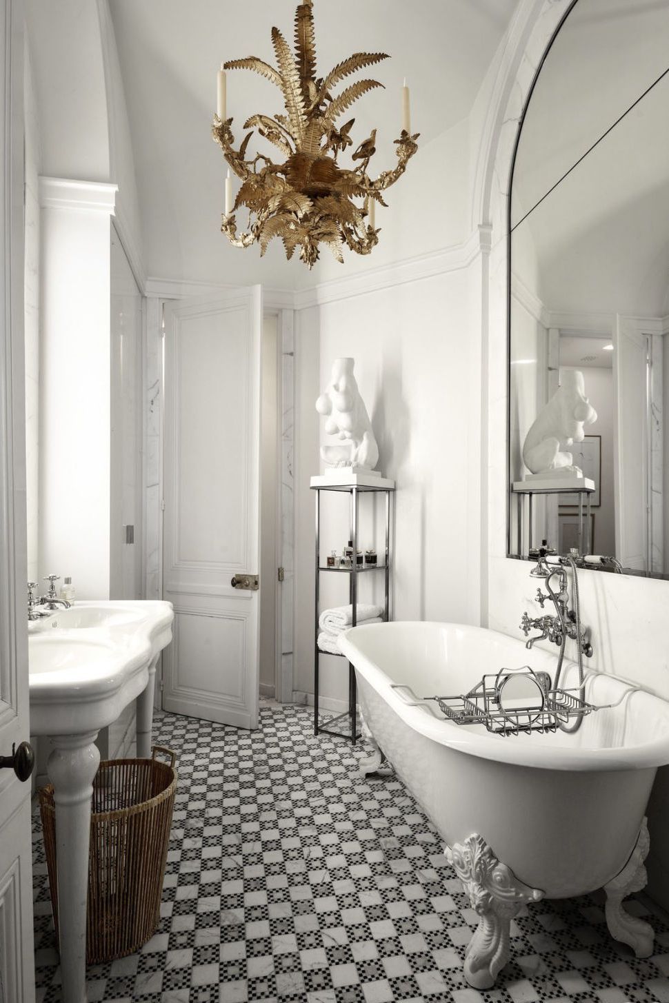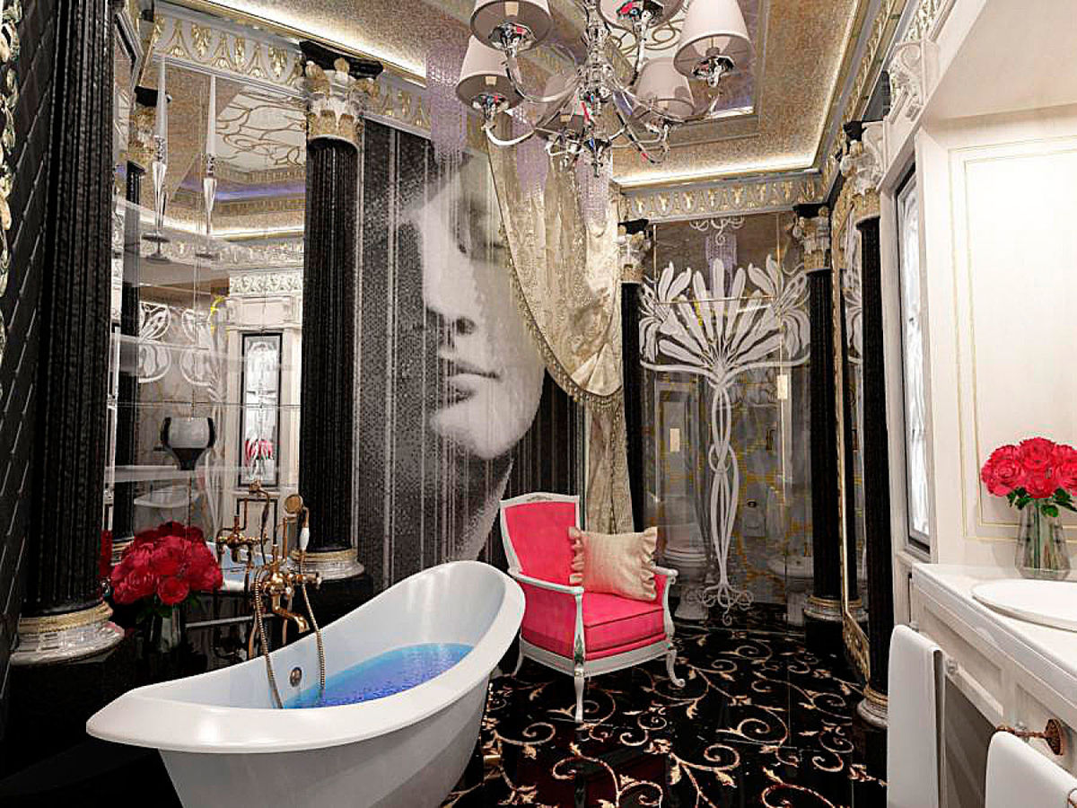 Quant à la plomberie, elle devrait également être volumineuse. Les baignoires, lavabos, toilettes et bidets peuvent avoir les formes les plus incroyables. Les contours arrondis, les lignes douces et courbes sont les bienvenus. Matériaux de fabrication : acrylique, porcelaine, faïence, pierre naturelle. L'essentiel est qu'ils soient de haute qualité, sinon le sentiment de luxe que l'on s'efforce de créer dans un intérieur art déco disparaîtra.