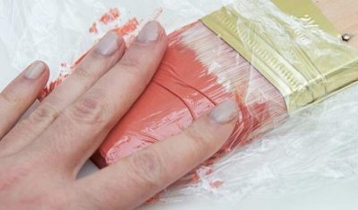Les pinceaux et les rouleaux sèchent très rapidement s'il reste de la peinture dessus. Pour éviter que cela ne se produise lors des travaux de réparation, les pinceaux peuvent être enveloppés dans un film alimentaire. Cela empêchera la peinture de sécher et protégera les objets de la contamination par la peinture.