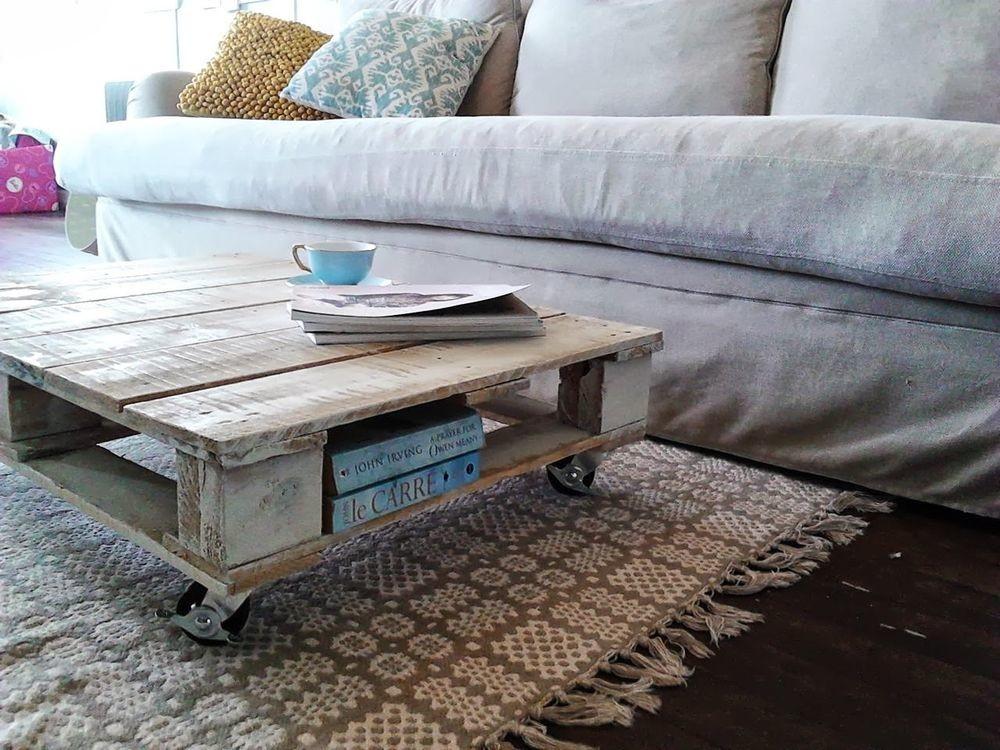Une idée intéressante : vous pouvez réaliser une table basse à partir de plusieurs palettes, et remplir l'espace entre elles de livres et de magazines.