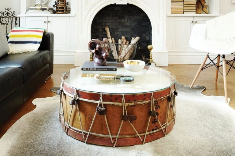Si vous avez un tambour qui traîne (et si !), alors pourquoi ne pas lui donner une seconde vie et le remplacer par une table basse. Il suffit de placer le verre sur le tambour et le meuble original est prêt. Les invités seront certainement surpris !
