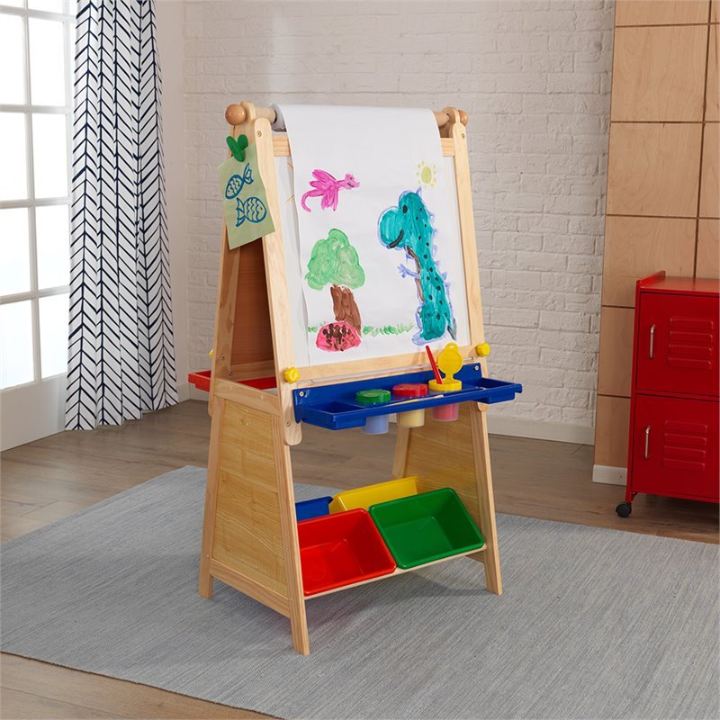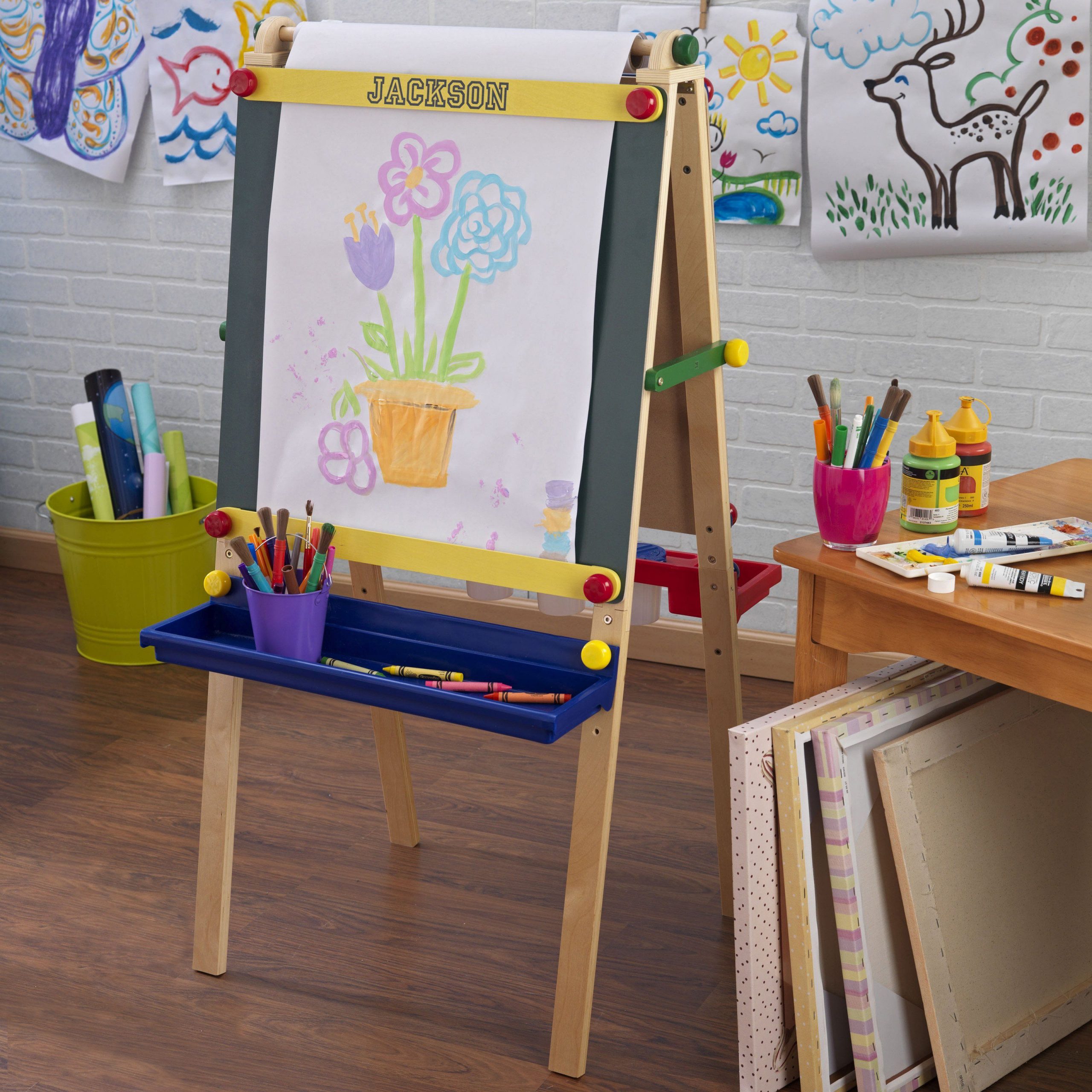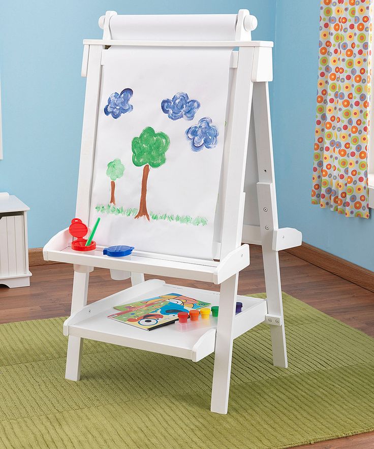 Les enfants sont intéressés à dessiner sur de grandes feuilles de papier, c'est pourquoi ils choisissent souvent eux-mêmes du papier peint - il n'y a pas de frontières du tout et vous pouvez créer autant que vous le souhaitez. Essayez d'installer un chevalet, mais ne limitez pas votre enfant à une feuille A4 standard - laissez-le dessiner au moins sur du papier Whatman. Ou vous pouvez aller encore plus loin et offrir au jeune artiste un rouleau de papier entier. Il est monté sur un chevalet et la zone de dessin peut toujours être décalée, poursuivant ainsi le dessin.