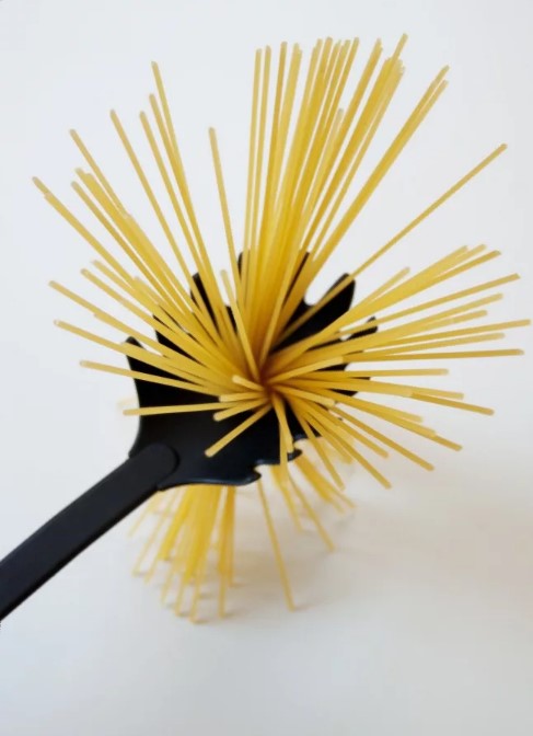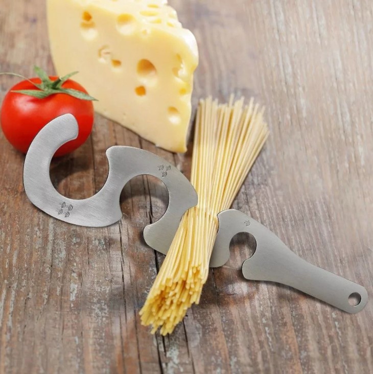 Les ménagères se demandent à quoi sert le trou de cet accessoire. En attendant, il s'agit d'une sorte de distributeur de nourriture : la quantité de pâtes qui y rentre est égale à la portion pour une personne.