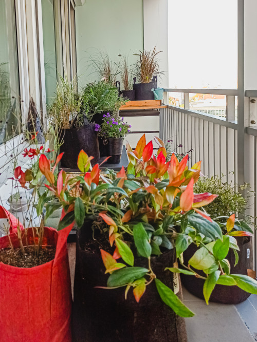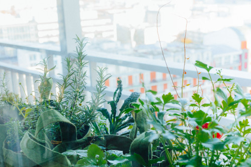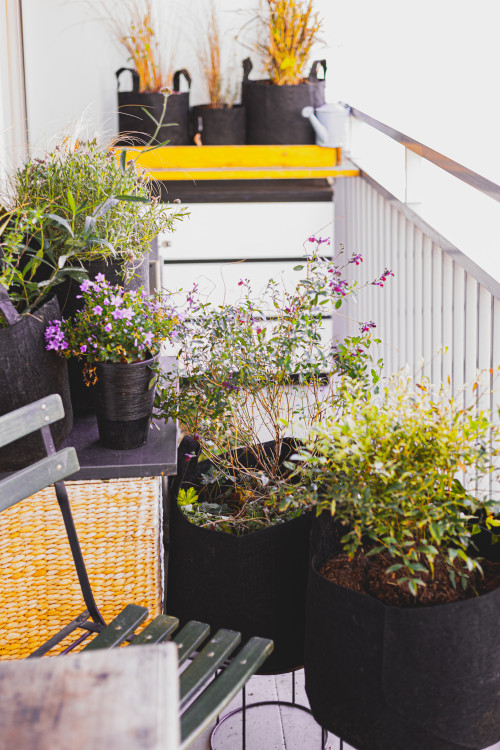 L'auteur du projet n'a pas seulement planté des cultures dans des pots - elle a combiné des compositions entières où de petites et jolies fleurs poussaient à côté d'herbes. Et au lieu de pots, elle a choisi de jolis paniers géotextiles. Le résultat n’était qu’un éco-balcon méga-cool.