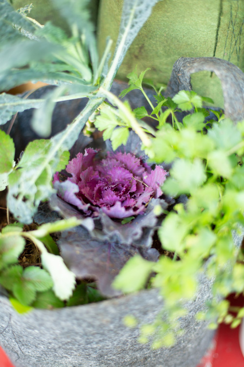 Tomates, courgettes, poivrons, fraises, basilic, lavande, thym, romarin, oignons, sauge, camomille, fenouil ont été plantés au soleil, et laitues, épinards, oseille, coriandre, pois, radis, roquette, soucis, primevères ont été plantés au soleil. l'ombre, violettes, ail des ours.
