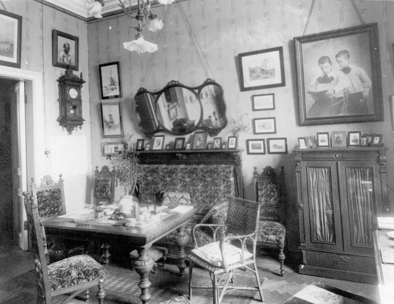 Oui, dans le passé, les tableaux et les photographies étaient également accrochés légèrement en biais. Mais il y a ici une raison légèrement différente. On pensait que cet emplacement permettait une meilleure vision de l'image, car elle ne serait pas éblouissante et la poussière ne s'accumulerait pas aussi intensément.