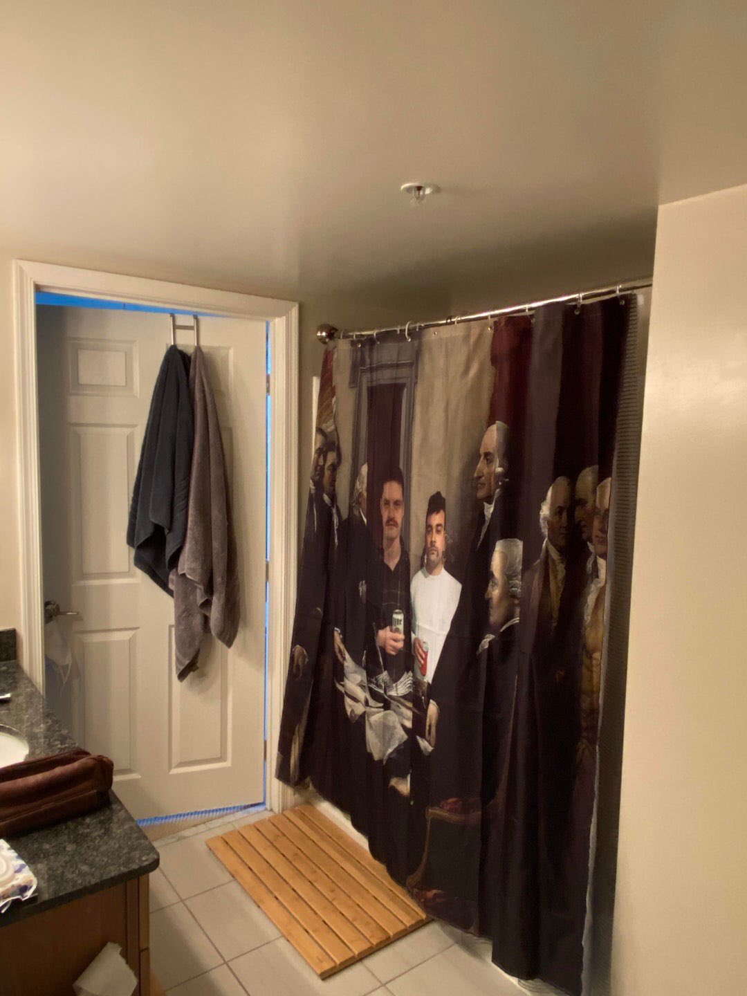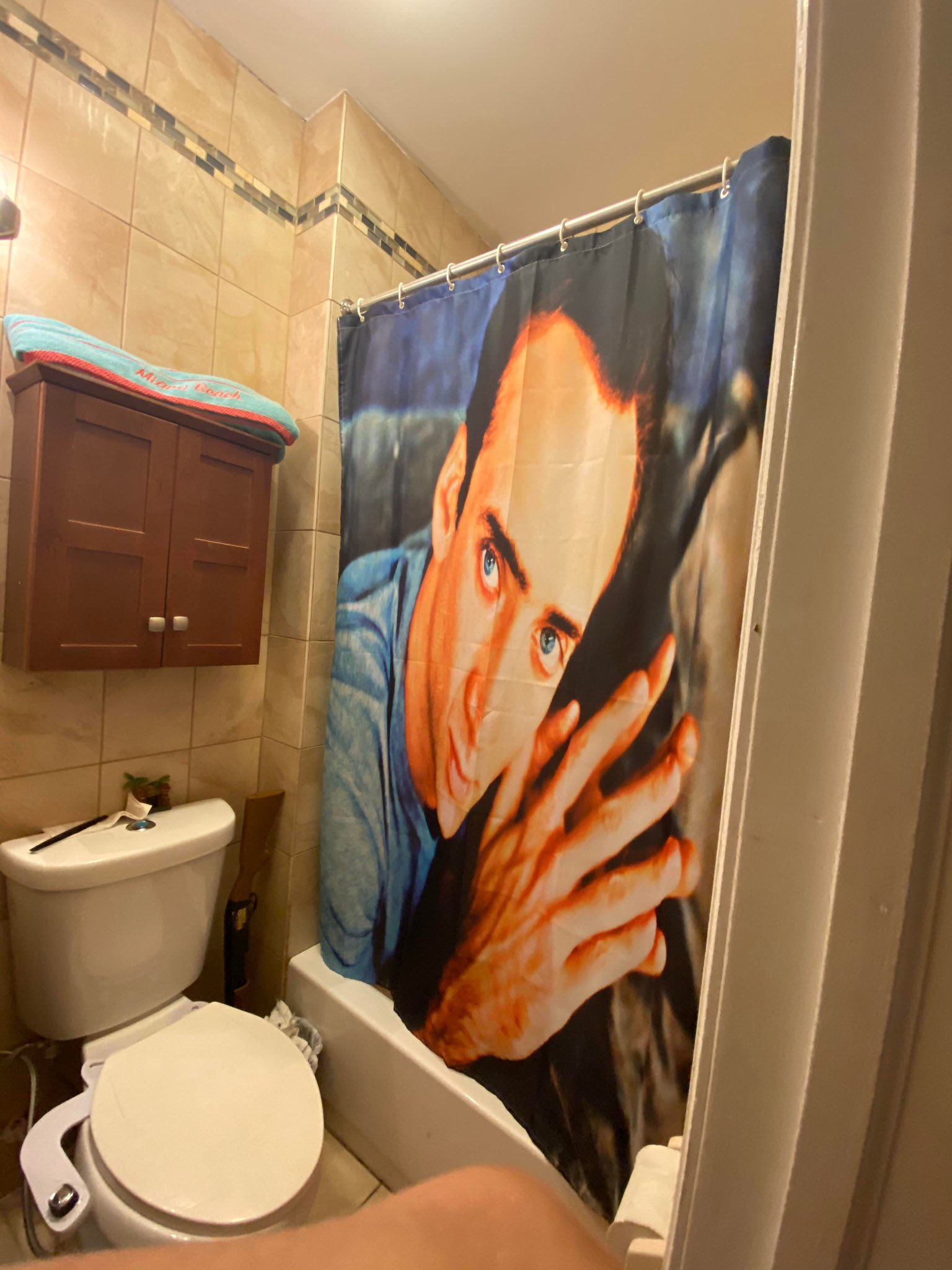 En général, un studio est comme un dessin à part. Il fait ce qu'il veut, mais c'est pourquoi l'intérieur semble intéressant - l'essentiel est que le propriétaire se sente à l'aise et à l'aise. Il existe des solutions très atypiques. Par exemple, le rideau de la salle de bain avec Nicolas Cage qui vous regarde. Ou une batterie (probablement pour plaire aux voisins), une immense télévision, un éclairage sophistiqué - tout cela semble, pour le moins, étrange, mais, apparemment, c'est exactement ce que les hommes aiment. Et cela ne nous dérange pas. L'essentiel est qu'il soit heureux.