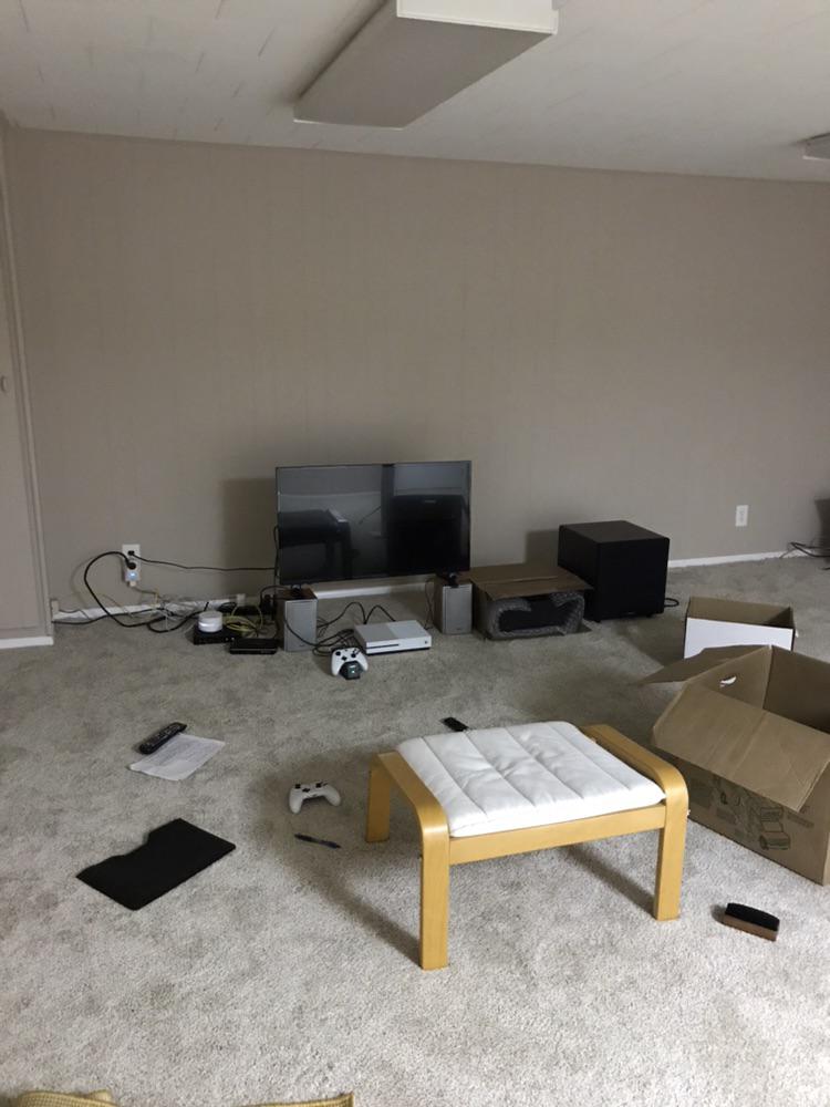 Parfois, un homme vit parmi des cartons qu'il n'a pas encore eu le temps de démonter après un déménagement (ou n'avait même pas l'intention de le faire), car tout d'abord, le moniteur, la Xbox et une sorte de chaise sont déballés, où cette propriété, acquise par un travail éreintant, doit être placé. Vous pouvez réellement dormir par terre.