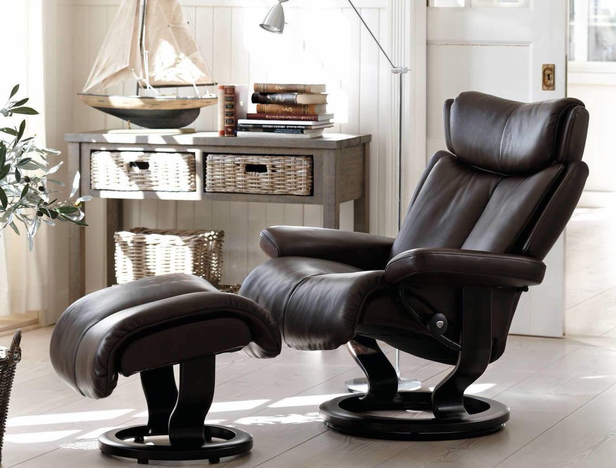 Quoi de plus cool que de rentrer à la maison et de s'allonger non pas sur un canapé grinçant (qui, d'ailleurs, a également été hérité de ma grand-mère), mais de tomber dans le fauteuil en cuir le plus doux - il vous serrera dans ses bras, vous réchauffera et soutiendra vos jambes (si avec un support). Eh bien, oui, comment s'est passée ta journée - il ne demandera pas, il ne vous donnera pas à dîner, mais peut-être qu'il n'en a plus besoin ? Avec une telle chaise, les raviolis sont un bonheur, et en général, « j'ai mangé à la cantine !