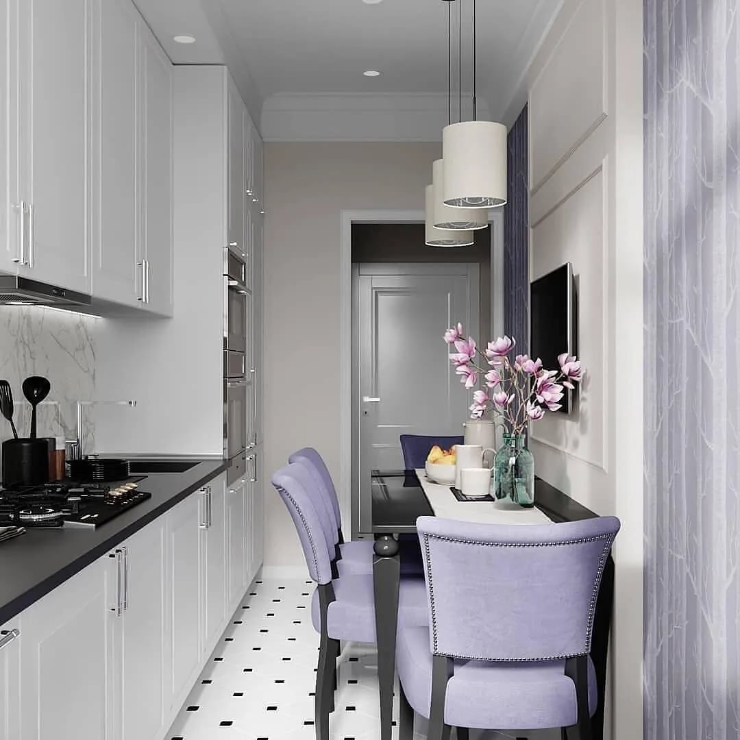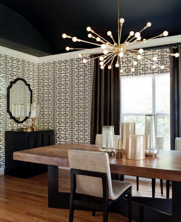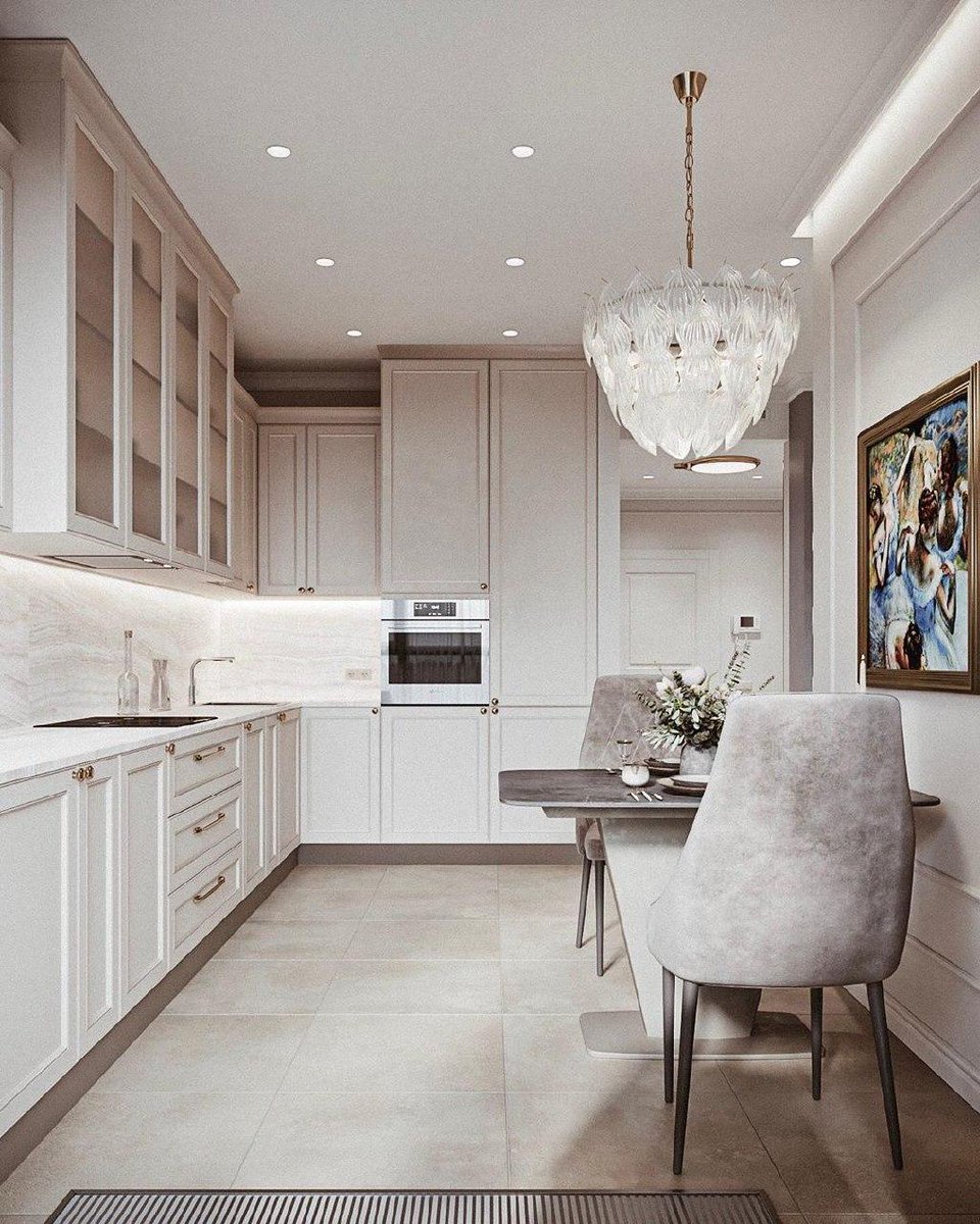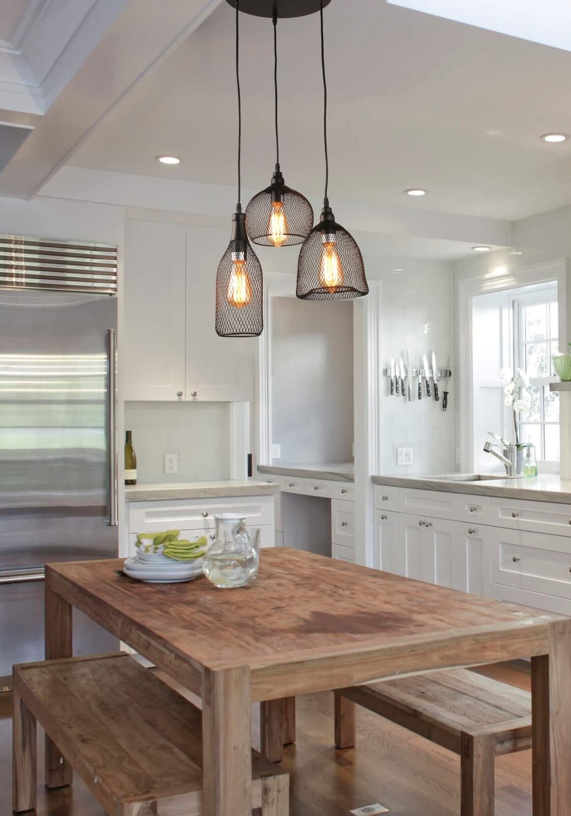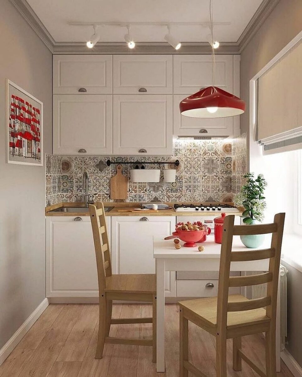 La taille de la pièce et sa forme influenceront le choix du lustre. Si la pièce est étroite, placer le luminaire au milieu entraînera une obscurité dans les coins. Pour une telle pièce, il est plus rationnel d’utiliser des sources lumineuses appariées.Pour une grande cuisine, un seul lustre peut ne pas suffire.