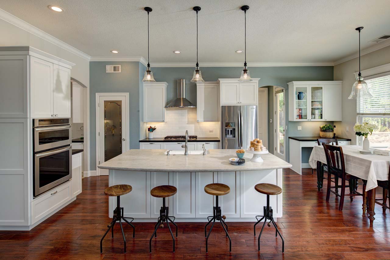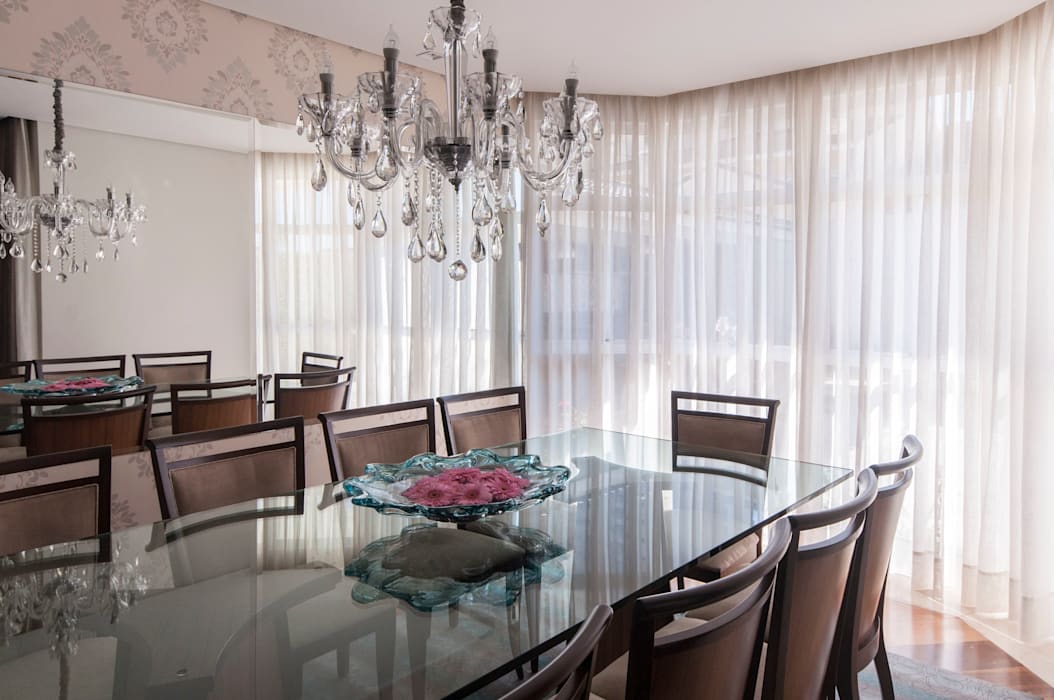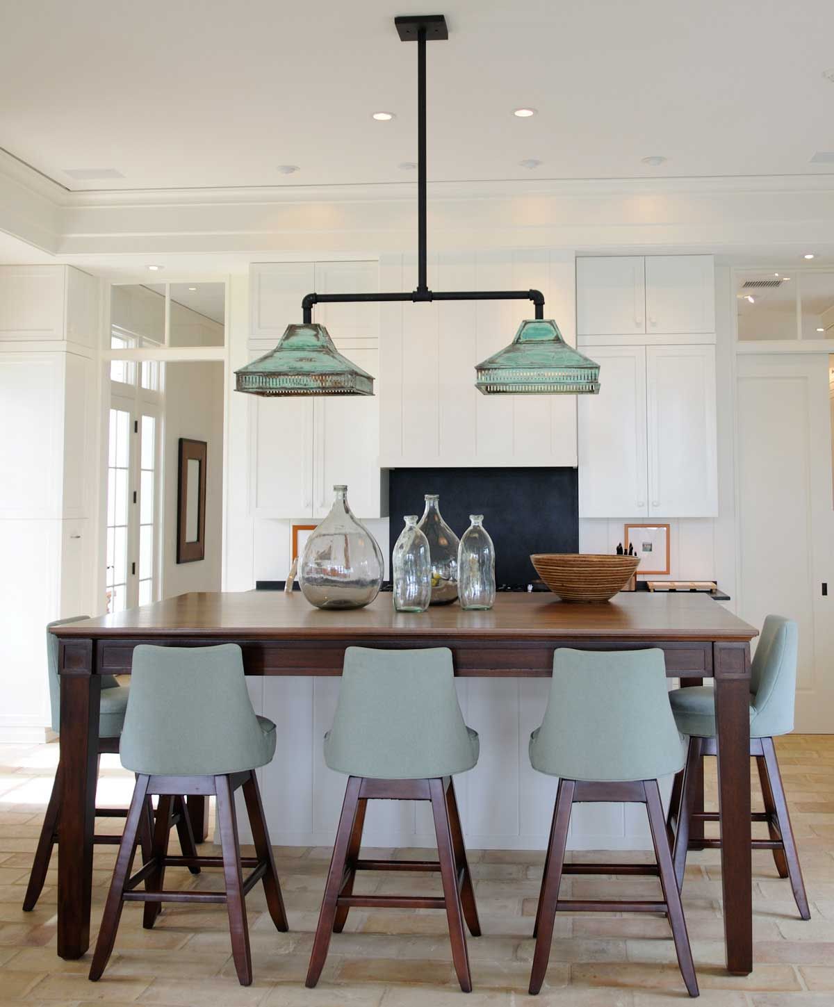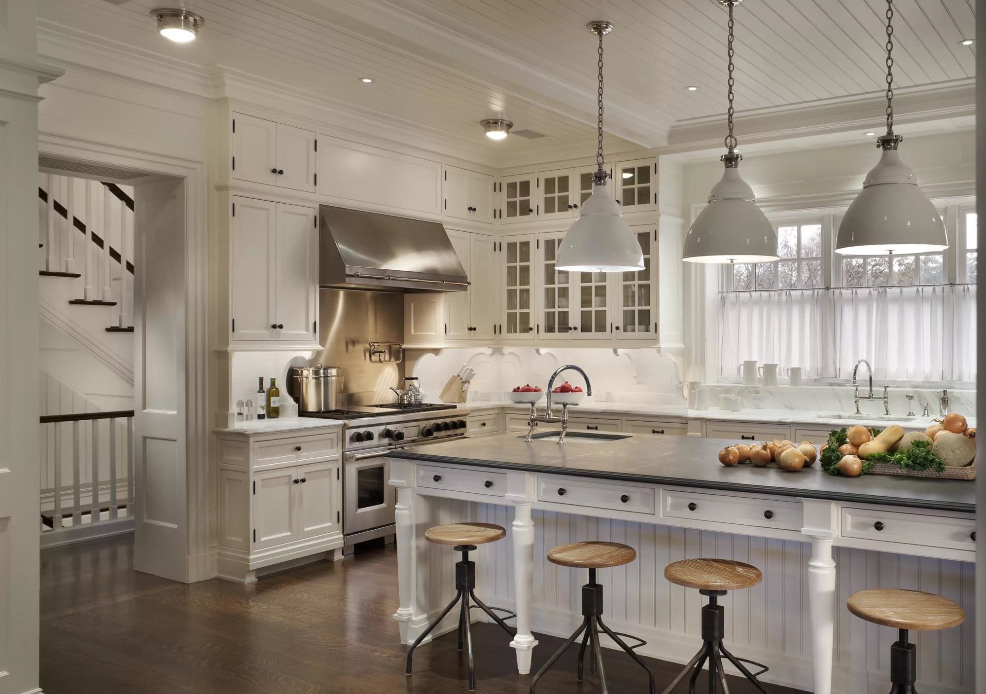 La taille de la pièce et sa forme influenceront le choix du lustre. Si la pièce est étroite, placer le luminaire au milieu entraînera une obscurité dans les coins. Pour une telle pièce, il est plus rationnel d’utiliser des sources lumineuses appariées.Pour une grande cuisine, un seul lustre peut ne pas suffire.