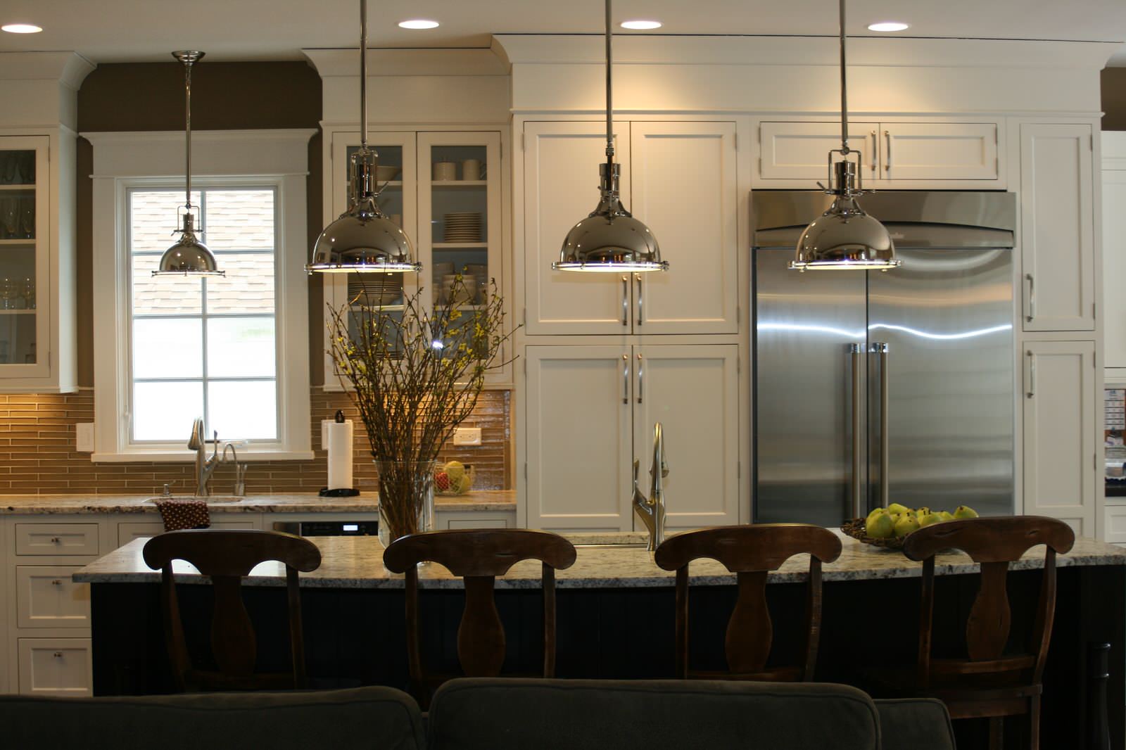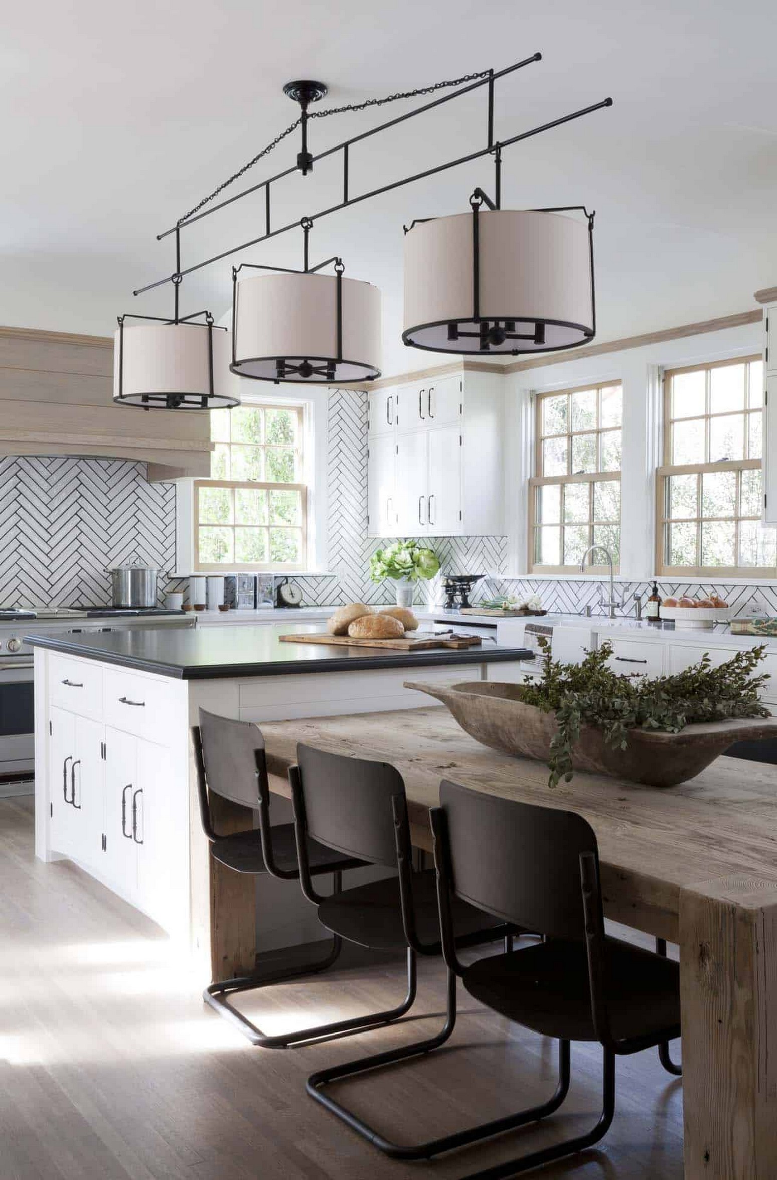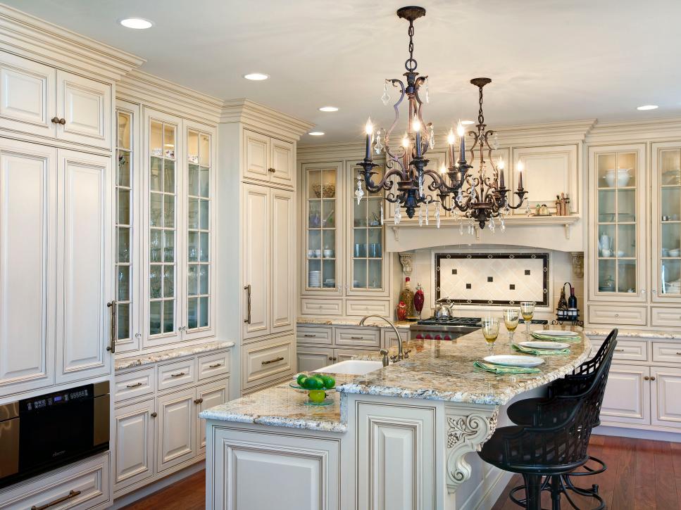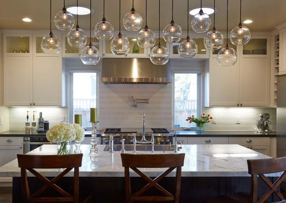 Conseil! Si une péninsule ou un îlot est installé dans la cuisine, alors le lustre est placé au-dessus. Pour le reste de l'espace, un éclairage local est adapté. Dans ce cas, le produit est suspendu de manière à ce qu'il se trouve à au moins 70 cm au-dessus du plateau.