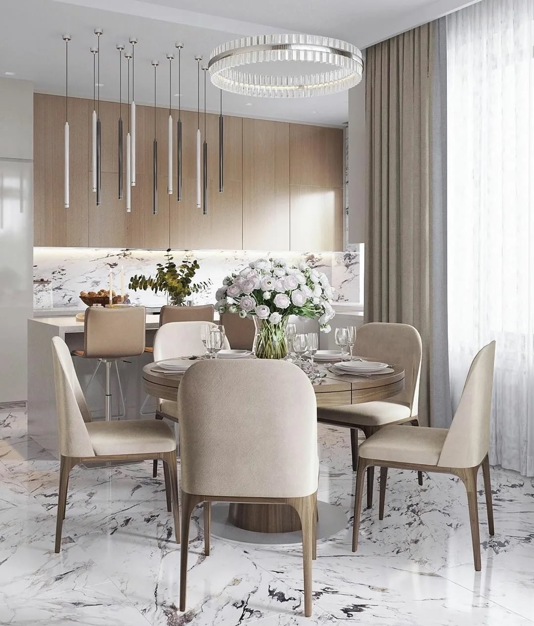 Lorsque vous combinez plusieurs pièces en une seule, il est préférable de placer deux lustres - un pour chaque pièce. Vous pouvez également équiper séparément chaque zone en lumière.