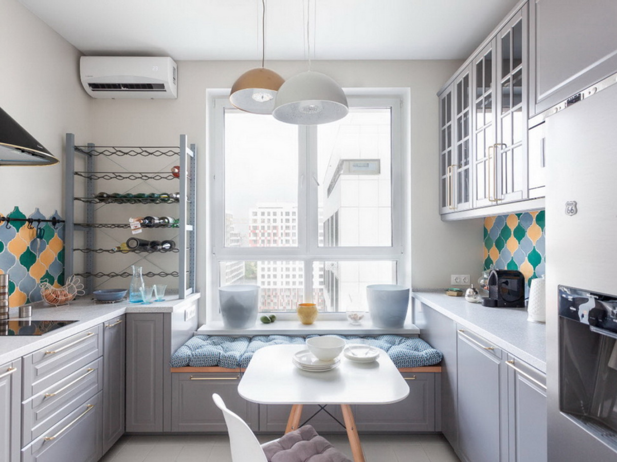 Le principal problème est le manque d’espace. Et un lustre peut gagner des mètres carrés supplémentaires, rendant la pièce encore plus compacte. Il est recommandé d'utiliser des plateformes transparentes. Ils créent l'effet de dissolution dans l'air et sont à peine perceptibles. L'éclairage est adapté à la zone de travail. Pour le coin repas, il est préférable de choisir une petite lampe.