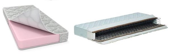 Les matelas à ressorts sont disponibles en deux types - avec bloc ressort dépendant et indépendant. Le deuxième type présente de nombreux avantages par rapport au premier, mais son principal inconvénient est le coût élevé de l'option pour un nouveau-né. Naturellement, ces matelas contiennent d'autres garnitures que le métal.