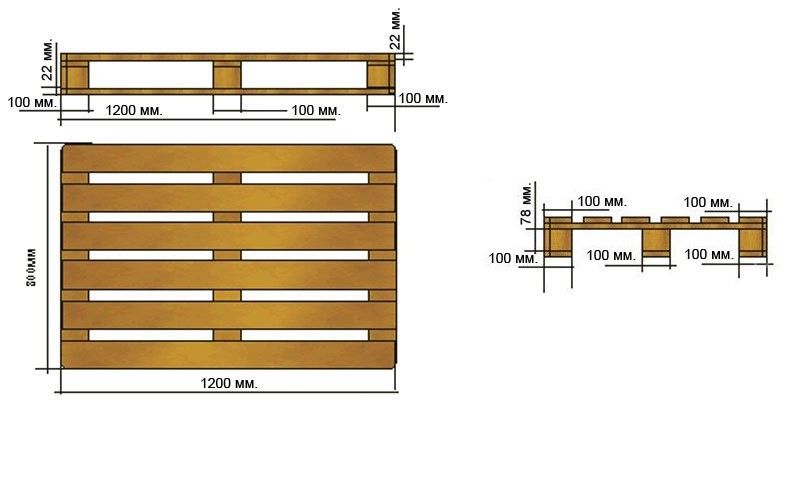 La conception des palettes est assez simple. Ils sont constitués de planches de bois reliées en un seul tout. Les boîtes doivent être de même taille et hauteur. Il est préférable de les fixer ensemble avec des vis autotaraudeuses. Même si la colle à bois promet une forte liaison entre les matériaux, mieux vaut quand même préférer les clous auto-vissants pour une plus grande fiabilité.