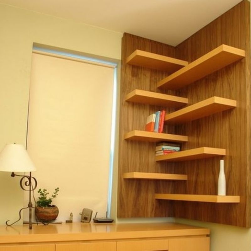 Une approche créative des affaires vous aidera à créer un beau produit. Les étagères peuvent avoir la forme d’un cercle, d’une vague ou de toute autre forme géométrique. L'imagination vous dira comment tirer le meilleur parti de l'espace.
