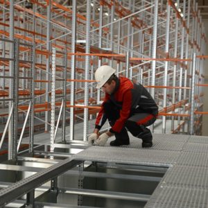 Installation d'étagères dans un entrepôt