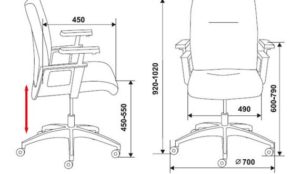 Les paramètres d'une chaise d'ordinateur dépendent entièrement de vos préférences, de votre taille et de votre poids. La figure montre les dimensions d'une chaise standard pour un adulte. Nous partirons de ces tailles.Si vous n'êtes pas satisfait de quelque chose, changez la taille.