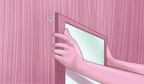 La dernière étape consiste à assembler tous les composants en une seule structure et à connecter la bande LED. Afin de pouvoir accrocher un miroir au mur, des attaches spéciales sont achetées dans une quincaillerie. Avant de les coller, la paroi arrière est essuyée avec un solvant.