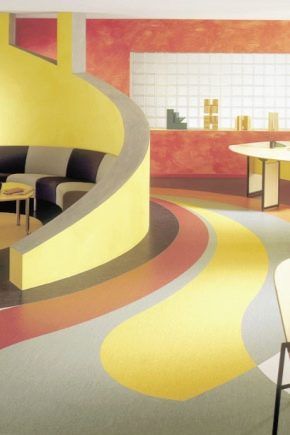 - L'industriel est utilisé dans les locaux d'usines, les entrepôts, les couloirs des institutions médicales ou gouvernementales. Étant donné que le matériau est peint sur toute son épaisseur et possède également un certain nombre de propriétés protectrices, il est capable de supporter les charges requises et de conserver son aspect pendant de nombreuses années d'utilisation.