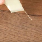 - À l'aide de colle ou de ruban adhésif, nous plaçons le même morceau de linoléum à cet endroit.