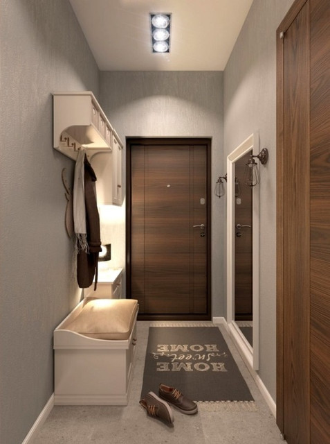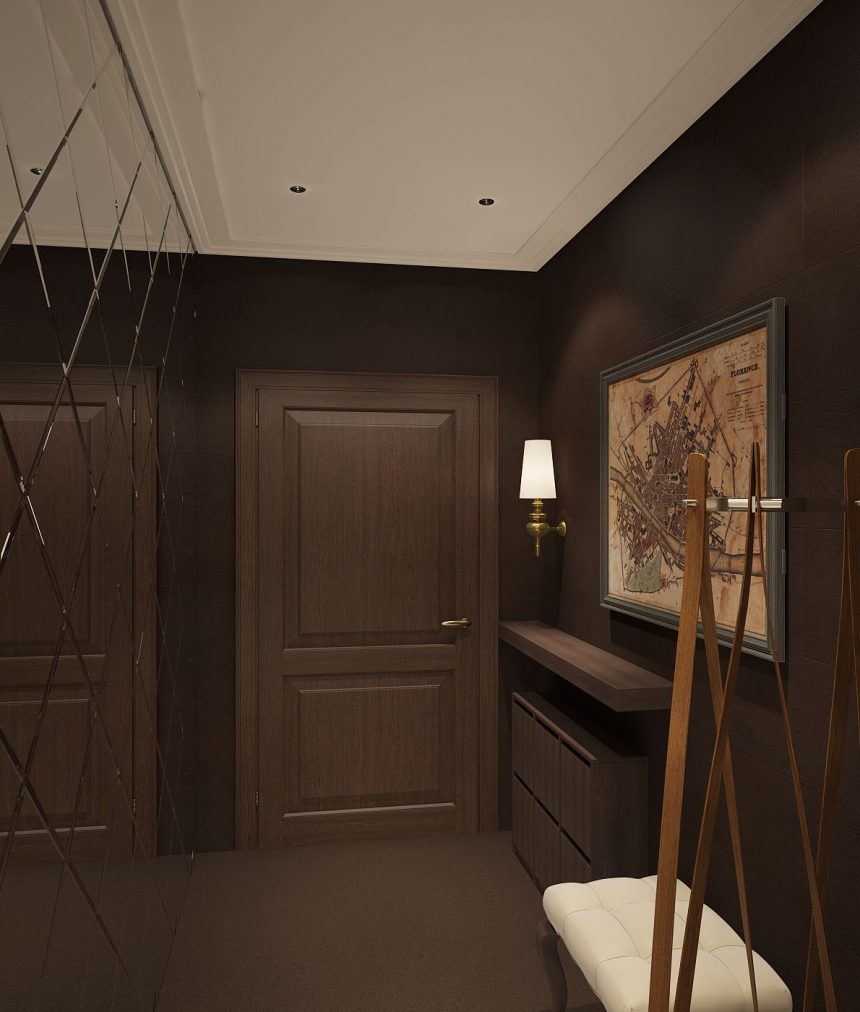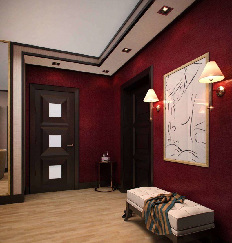 Lorsque le couloir est très petit, vous devez abandonner le papier peint sombre. Bien que dans certains cas, vous puissiez expérimenter si vous aimez vraiment une certaine teinte. Ensuite, vous devez accorder une attention particulière à l'éclairage et obtenir une lumière idéale à l'aide de lampes.