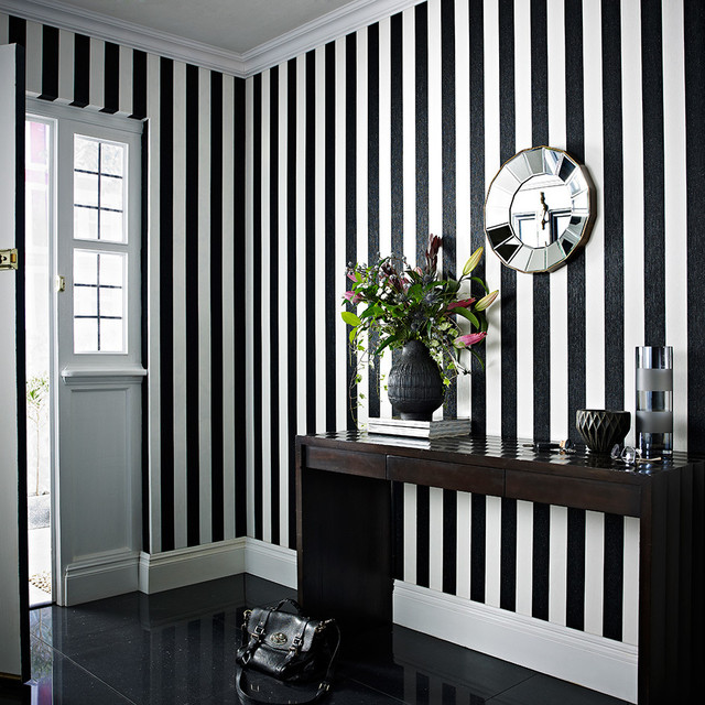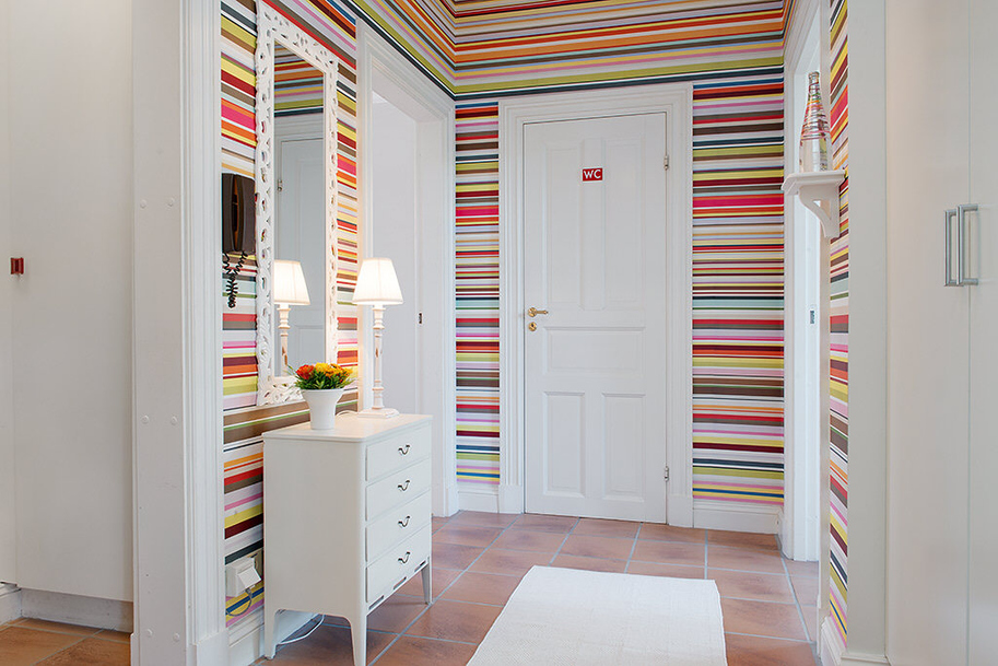 Les rayures sont une autre bonne option. L'horizontal rendra le mur visuellement plus large et le vertical allongera le plafond.