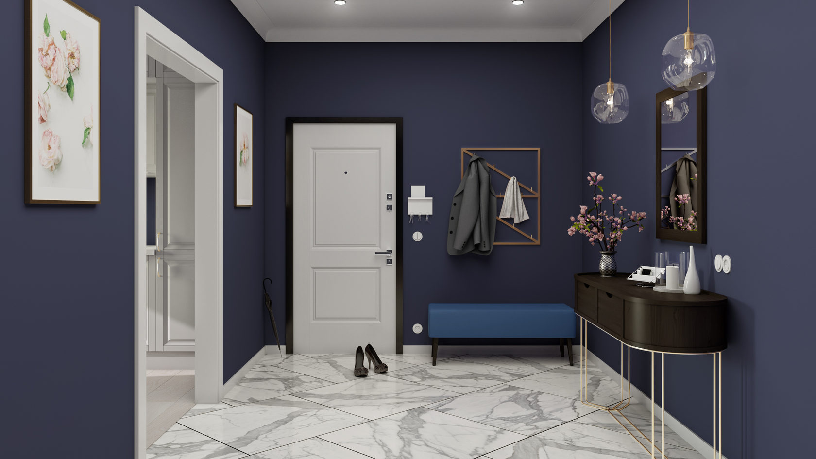 Tout le monde sait que les couleurs claires peuvent agrandir visuellement l'espace, c'est pourquoi ces options sont préférables pour le couloir. Si vous n'avez rien contre les tons froids, alors mieux vaut les choisir.